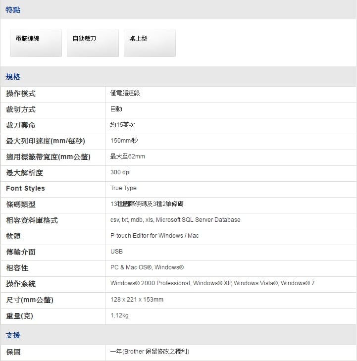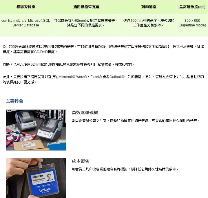 brother QL-700 超高速商品標示、食品成份標籤機