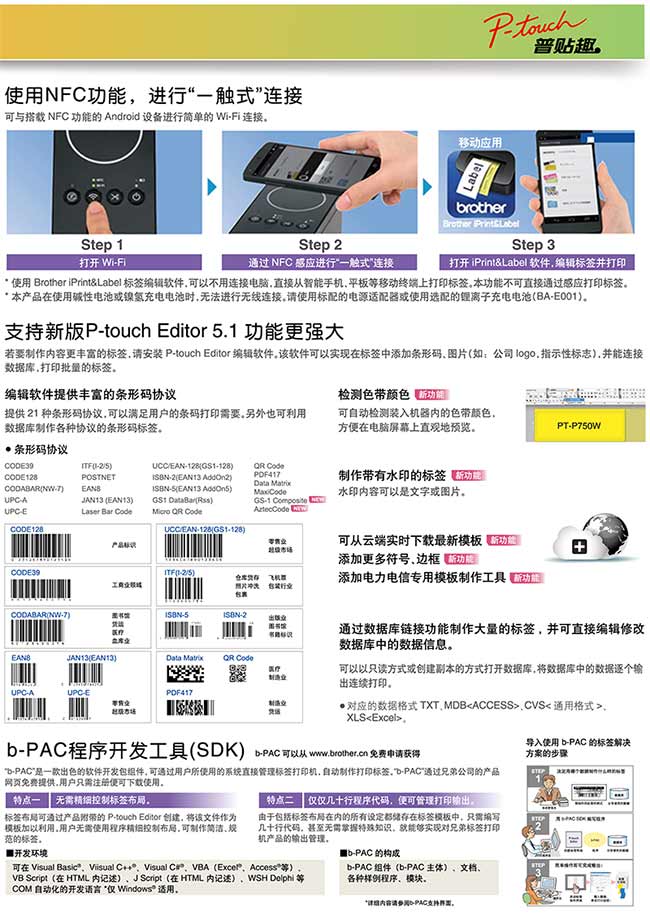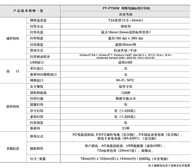 brother PT-P750W WIFI / NFC 高速無線傳