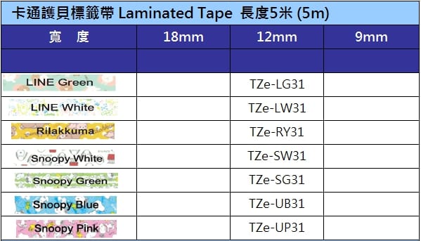 TZe-LG31 綠色12mm LINE friends標籤帶