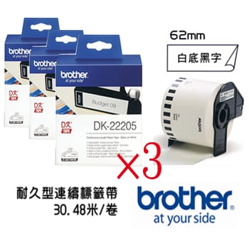 Brother DK-22205 連續標籤帶 ( 62mm 白底黑字 ) 耐久型紙質